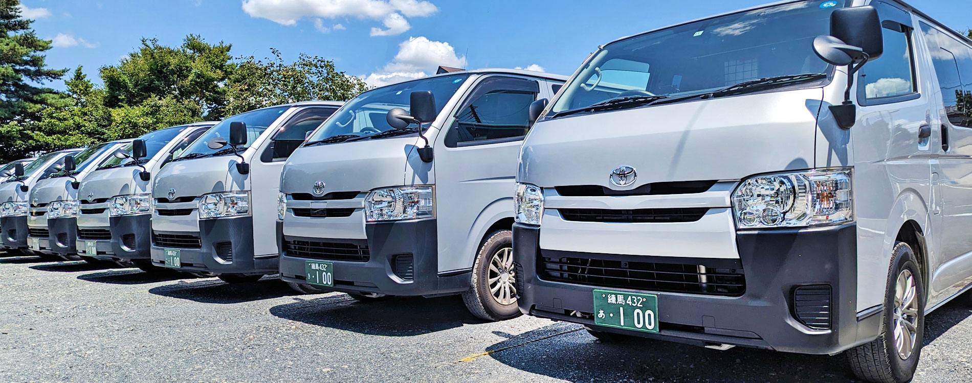 弊社営業車のナンバープレートは全車「100」となっております(軽貨物車両は除く)。これは「お客様満足度100点を目指そう!」と言う意味を込めて希望番号を選択しております。
